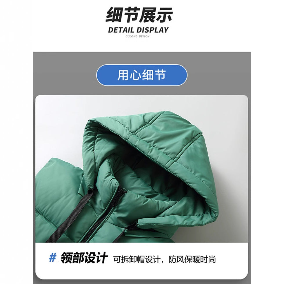 Step into winter prepared with this men’s thickened down cotton vest, combining warmth, practicality, and customizable style in one versatile garment.
