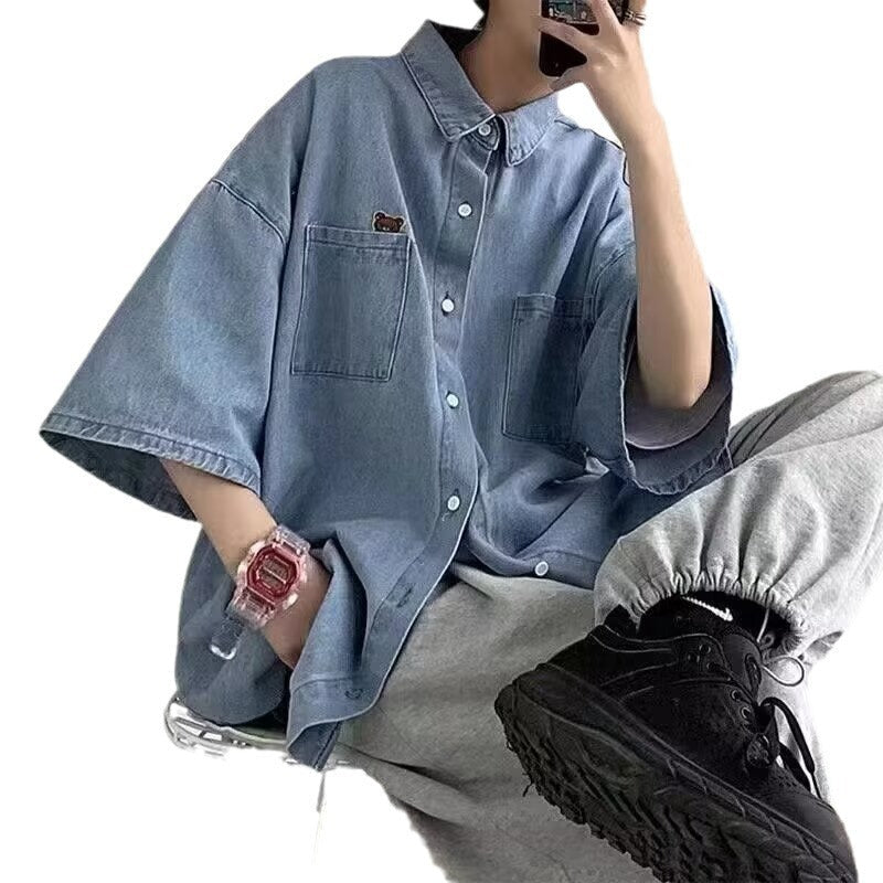 👔 Upgrade your summer wardrobe with the Men’s Thin Denim Short-Sleeved Cardigan Jacket, a new arrival that perfectly blends Korean fashion with casual versatility for men in Nepal! 🇳🇵 This loose-fit, lightweight denim top is designed for comfort and style during hot weather, making it an all-match piece for any occasion. ☀️👕