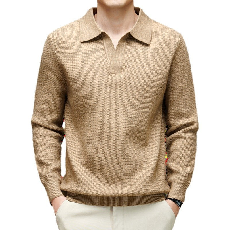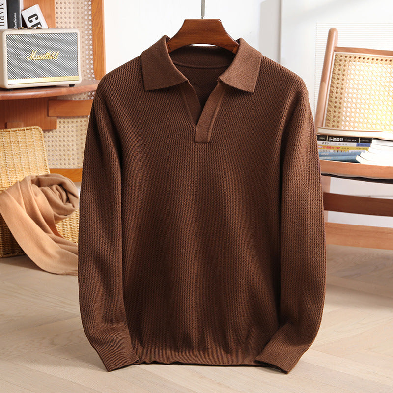 Ideal for juniors and trend-conscious men, this sweater blends a classic knitted base top with contemporary polo styling. Its soft texture feels gentle against the skin, providing all-day wearability. The loose silhouette makes it versatile for layering over undershirts or pairing with chinos, jeans, or casual trousers.