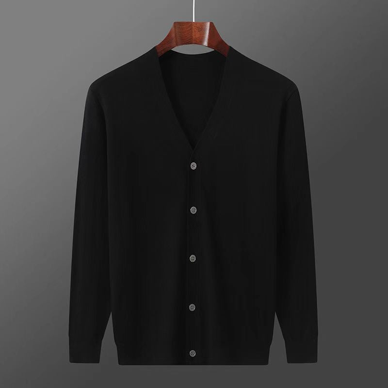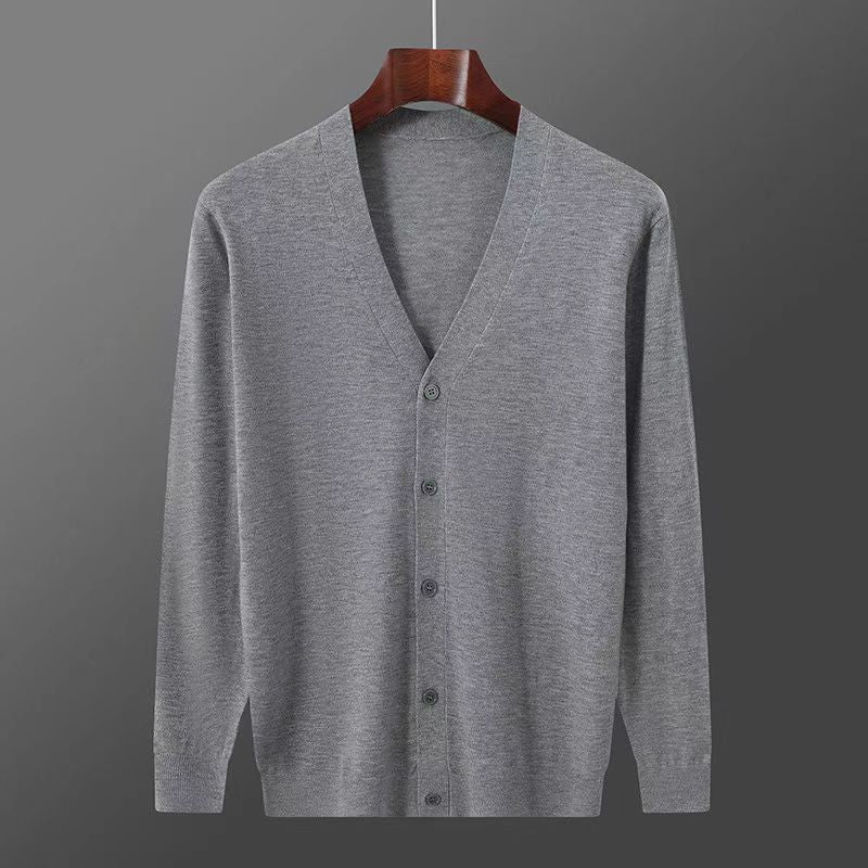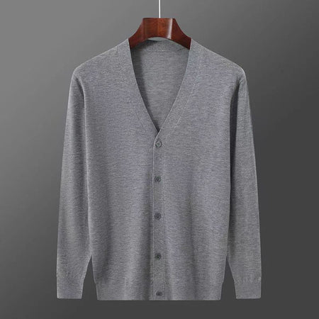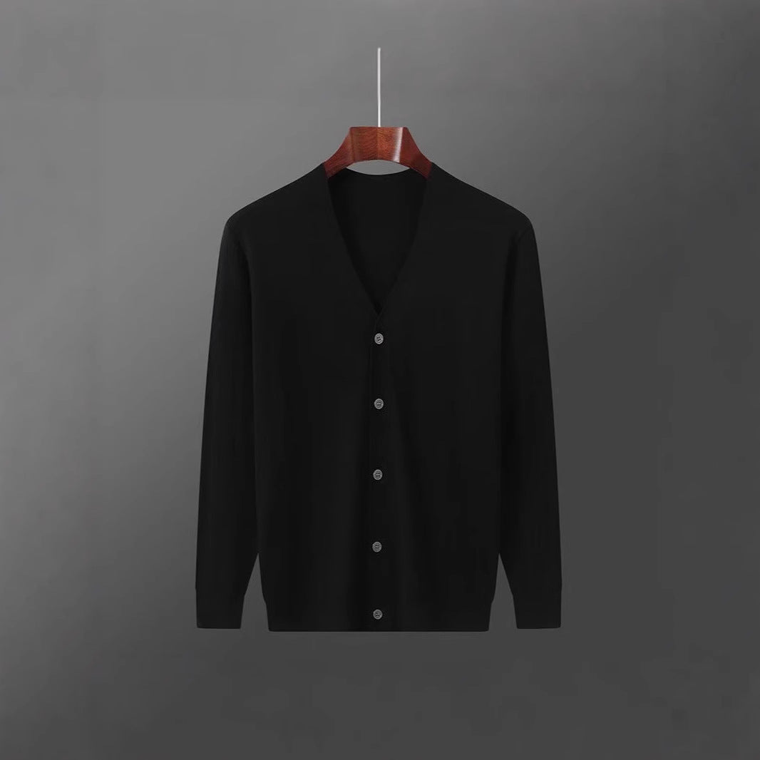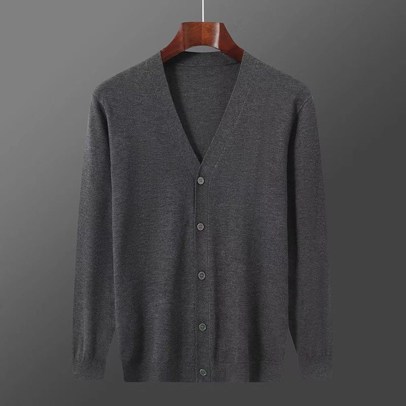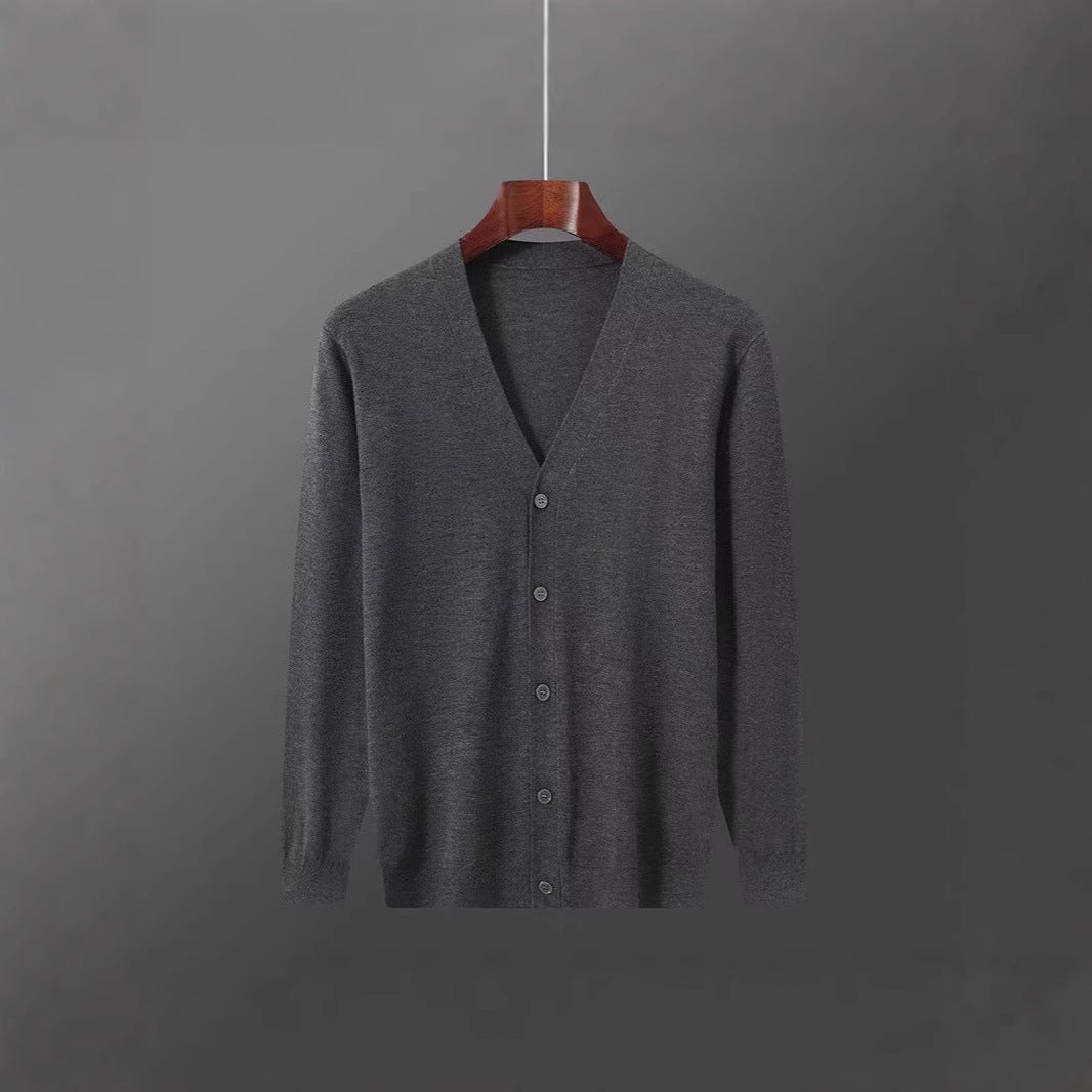 Men’s V-Neck Wool Sweater Cardigan Long-Sleeve