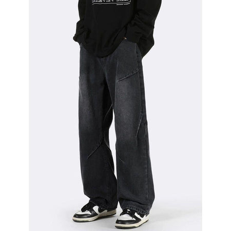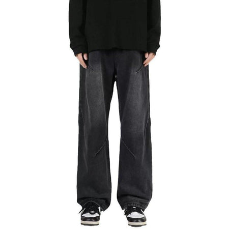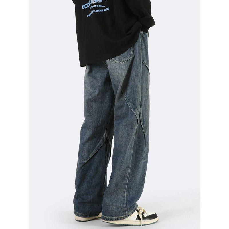 Men’s Wide-Leg Loose Stitching Jeans Autumn Winter Pants