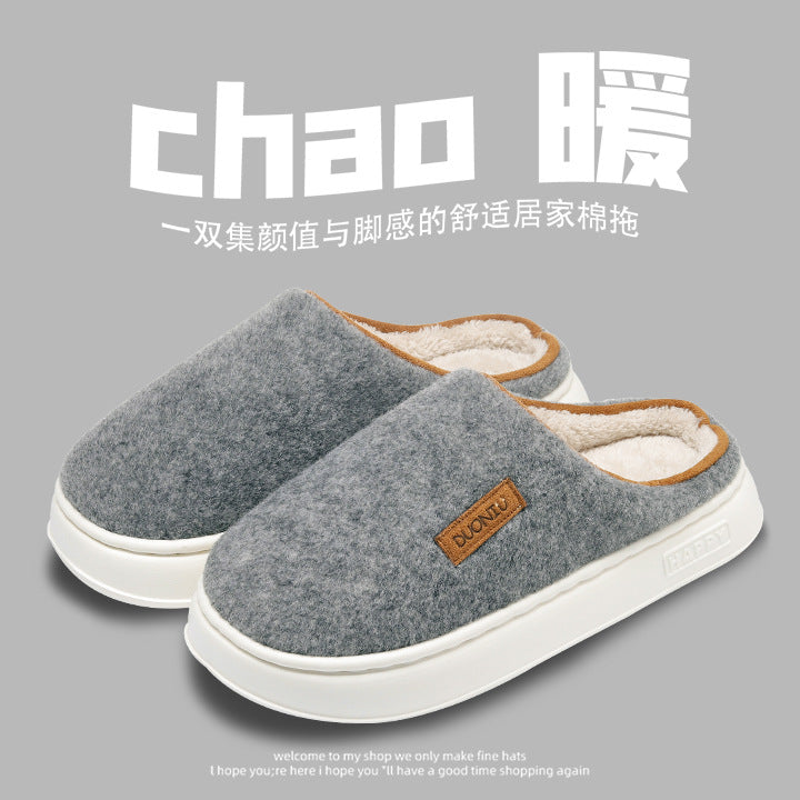 Men’s Winter Cotton Slippers – Thick Non-Slip Indoor Couple Shoes