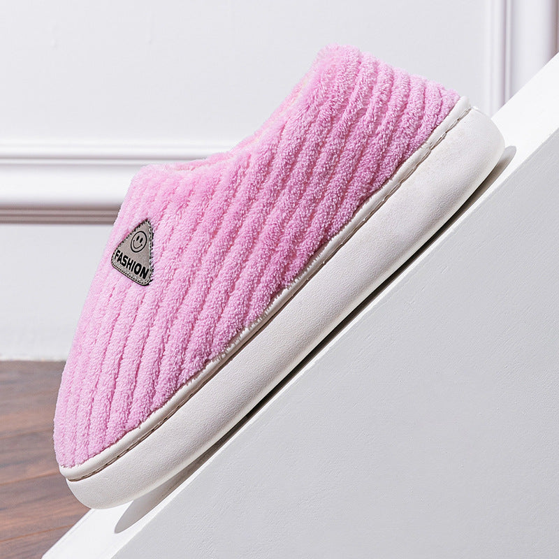 Upgrade your winter comfort with plush-heeled cotton slippers for men and women—warm, non-slip, and perfect for indoor and outdoor wear!
