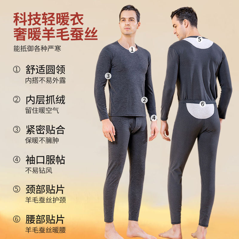 Men’s Wool Silk Thermal Suit | Padded Autumn Base Layer