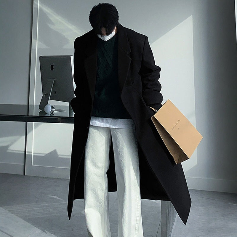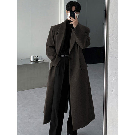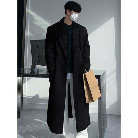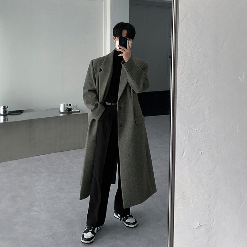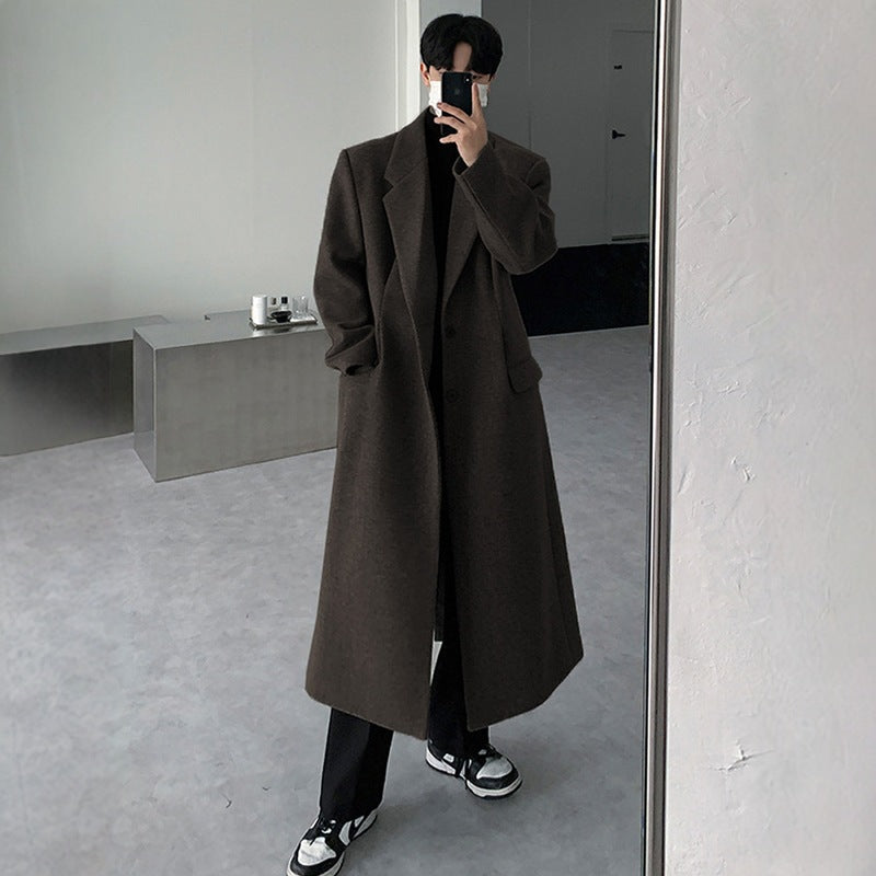 Men’s Woolen Knee-Length Coat Autumn Winter British Korean Style