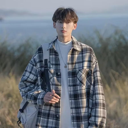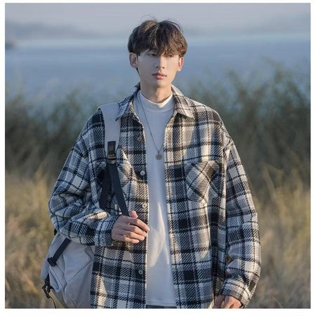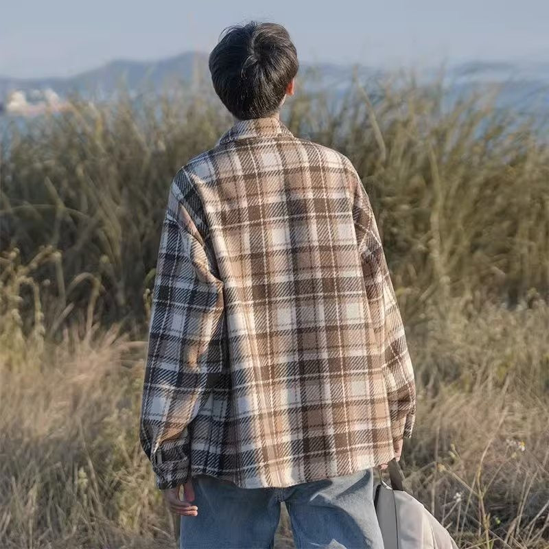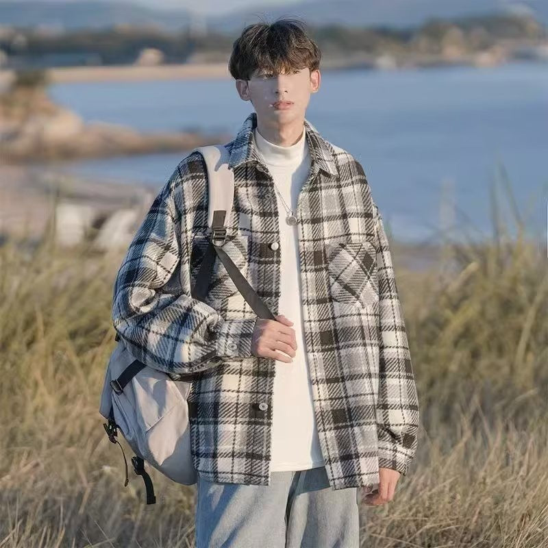 Upgrade your wardrobe with this Japanese-style woolen plaid men’s overshirt jacket—a comfortable, stylish, and versatile essential for autumn and winter fashion! 🌟