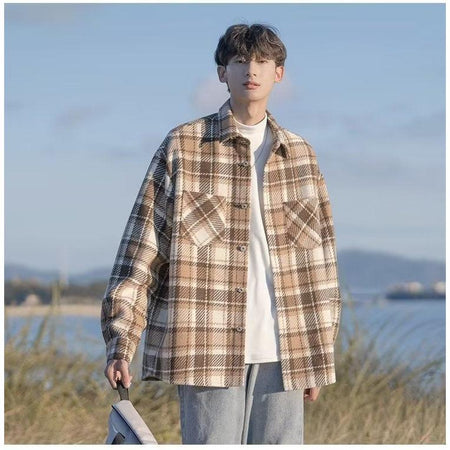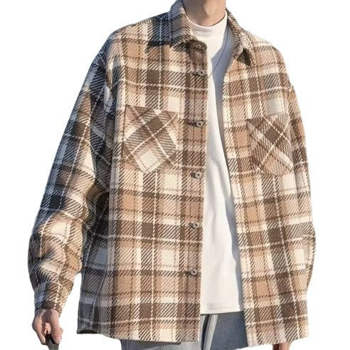 Men’s Woolen Plaid Japanese-Style Overshirt Jacket