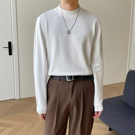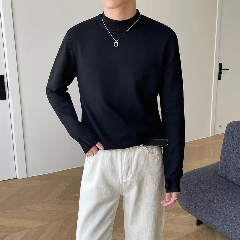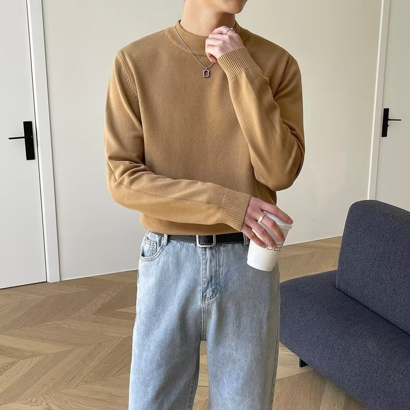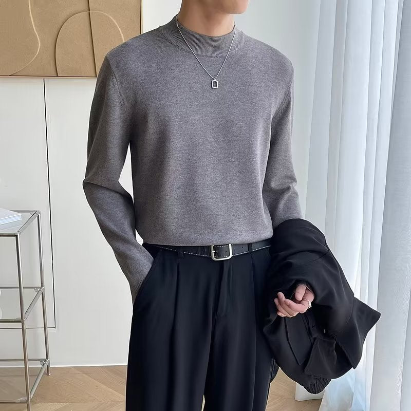 Stay warm in style with our men’s autumn and winter cashmere half turtleneck sweater, crafted with premium wool blend 🐑 for softness and durability. Designed with a mid-neck collar and relaxed fit, this Korean-style sweater is perfect for casual yet elegant looks.