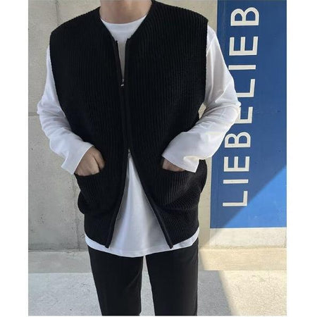 Sleeveless Sweater – Retro Solid Color Cardigan Vest