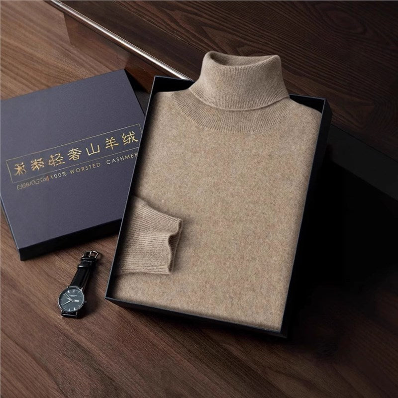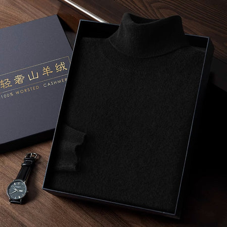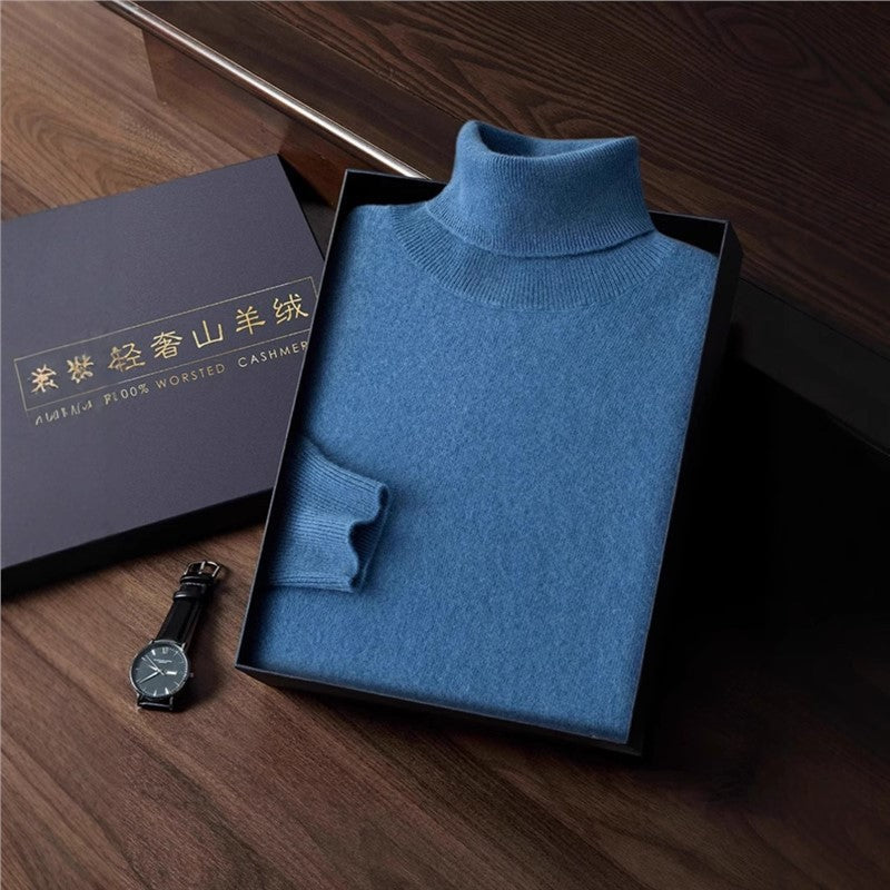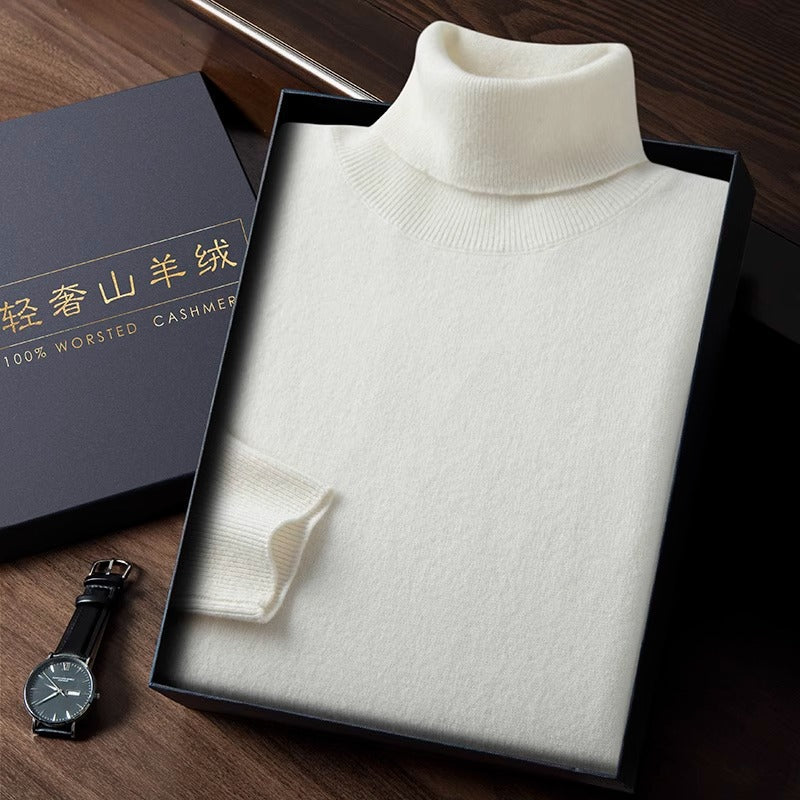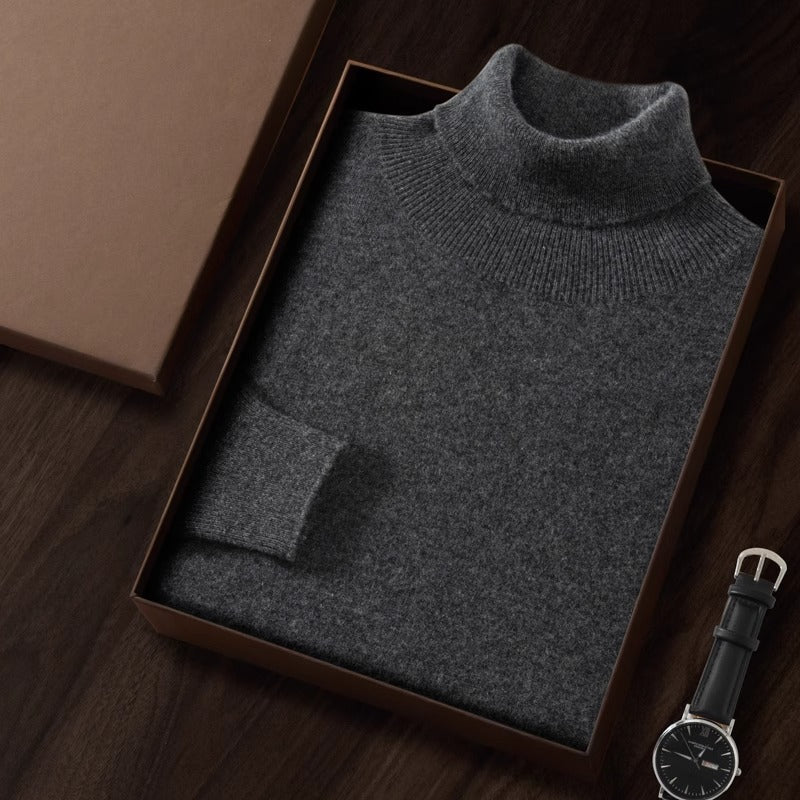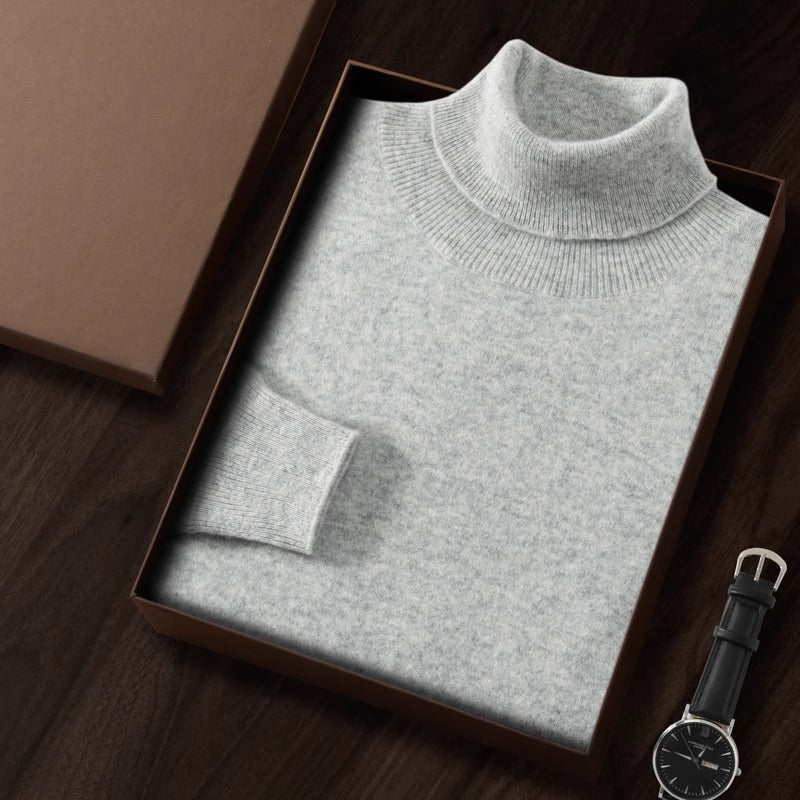 Men’s High Neck Fleece-Lined Sweater – Slim Fit Knit