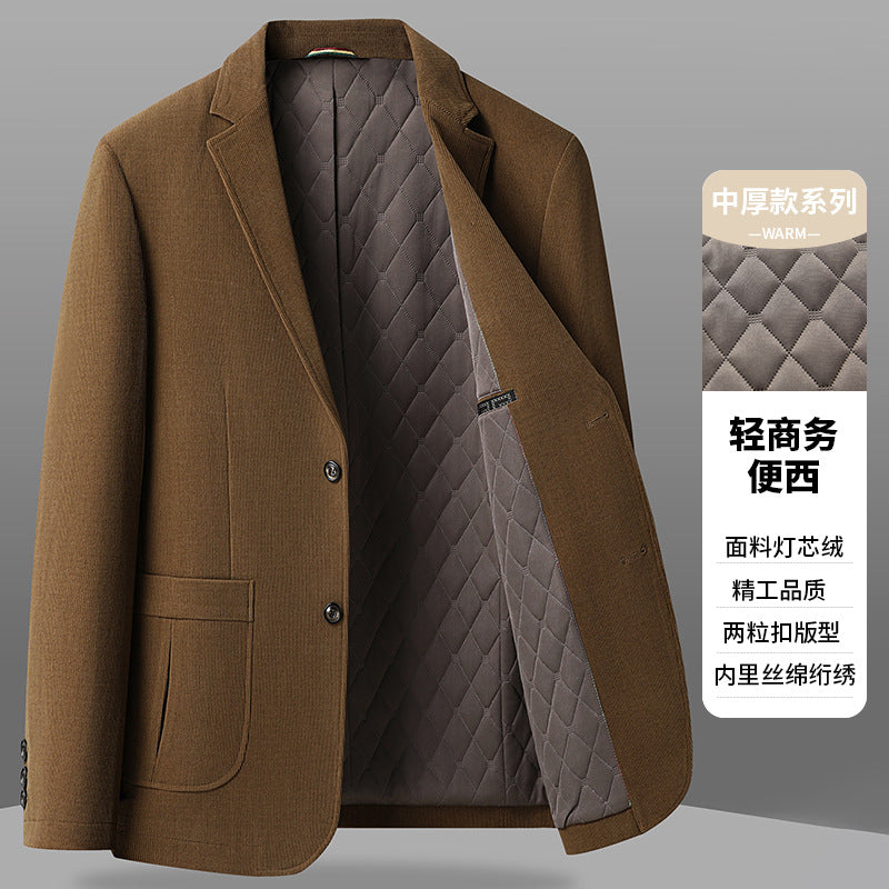 Stay warm without sacrificing style in this men’s corduroy quilted suit jacket. Designed for autumn and winter 2025, it’s the perfect choice for young professionals who value comfort, warmth, and a polished appearance.