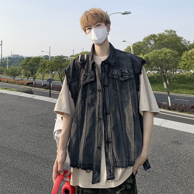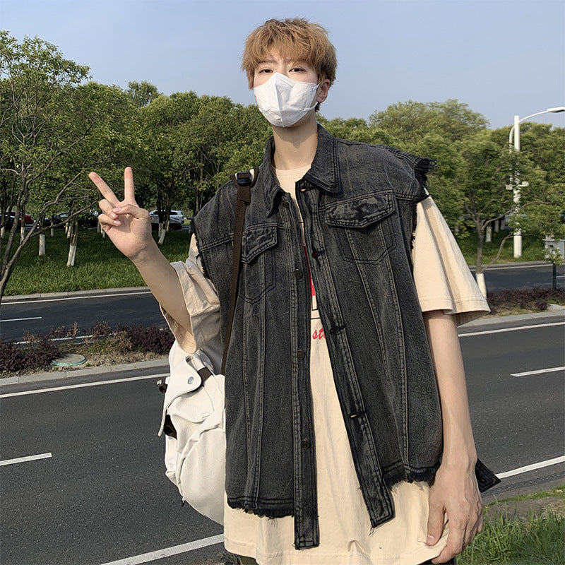 Rugged yet stylish, this smoke gray denim vest for men π¨ brings raw-edge detailing and American workwear vibes πΊπΈ. Designed with a loose fit for comfort, itβs perfect for men who like their fashion with attitude β‘.
