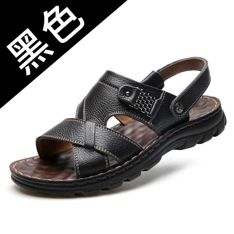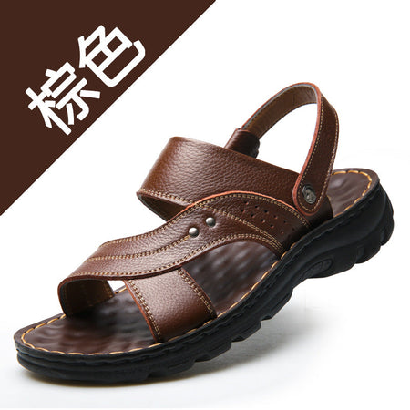 Men's Cowhide Sandals Thick Sole Casual Beach Shoes