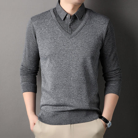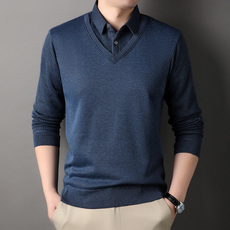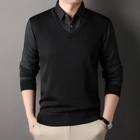 Men’s Fake Two-Piece| Striped Spring Top 2025
