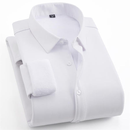 Men’s Fleece-Lined White Shirt – Warm Casual Long Sleeve