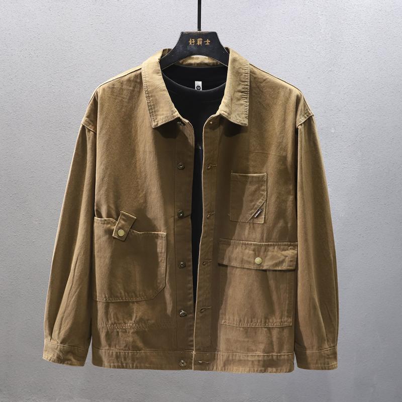 Upgrade your wardrobe with this high-end retro casual shirt jacket for men, perfect for spring and autumn. Designed with a loose fit and American workwear inspiration, this trendy jacket combines comfort, style, and versatility for everyday wear or social occasions.