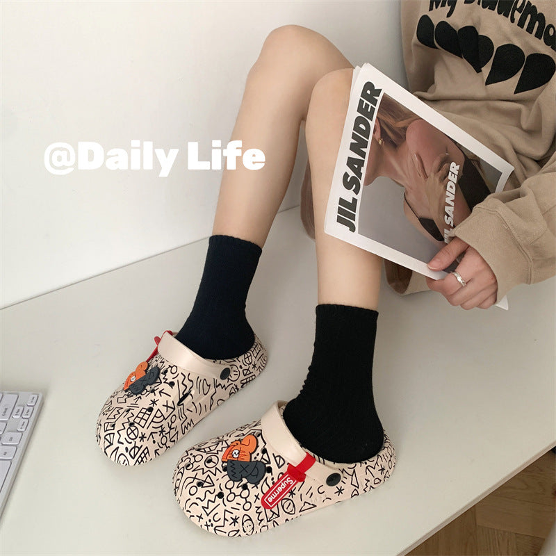Men’s 2024 Baotou Hole Shoes | Thick Sole Beach Slippers