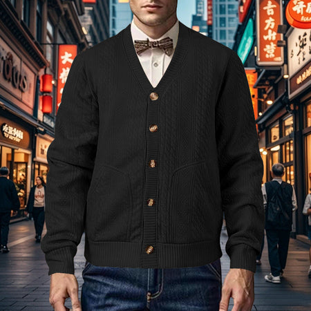 Men's Jacquard Buckle Cardigan – Autumn Winter Casual Jacket
