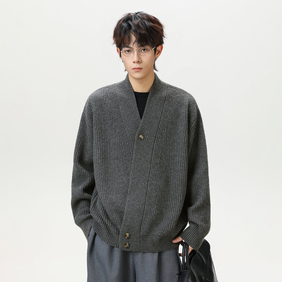 This cardigan sweater blends heritage-inspired design with modern fashion. The heavy knit keeps you cozy, while the slanted placket and Japanese retro styling elevate any outfit, whether youโre heading to a sophisticated gathering, casual office day, or weekend brunch. Its solid color and elegant silhouette make it easy to pair with trousers, chinos, or jeans, offering effortless versatility.
