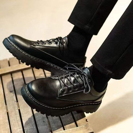 Men's Korean Style Black Leather Shoes Lace-Up Casual