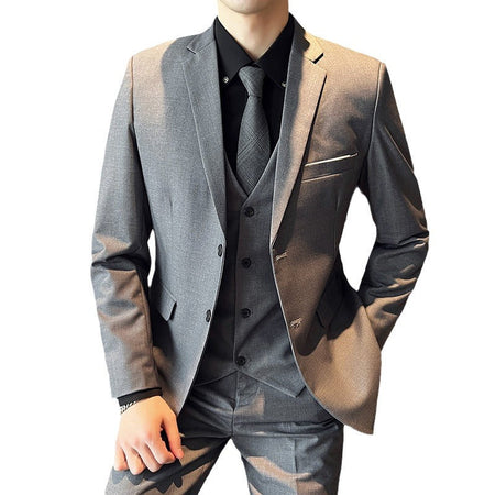 Men’s Korean Slim Fit Three-Piece White Collar Suit