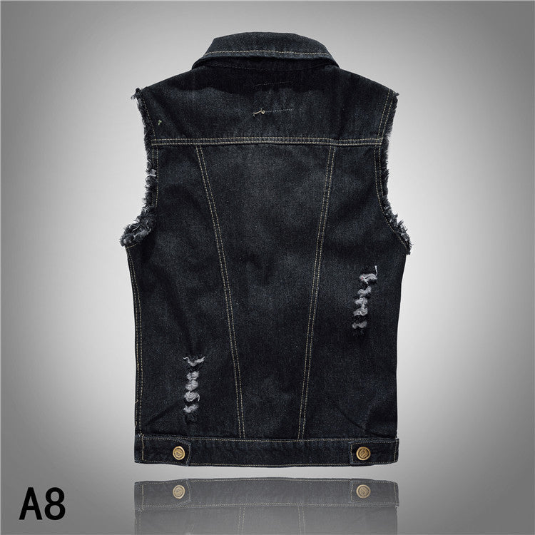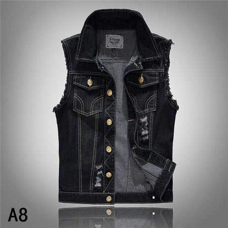 Men’s Vintage Washed Denim Vest – Casual Sleeveless Jacket
