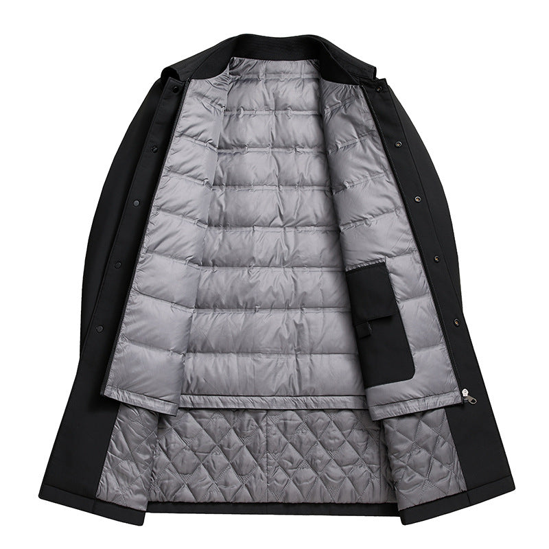 Step into timeless elegance with this double-breasted men’s trench coat, designed with an over-the-knee cut for maximum impact. Perfect for autumn and winter, it blends classic European tailoring with modern comfort.