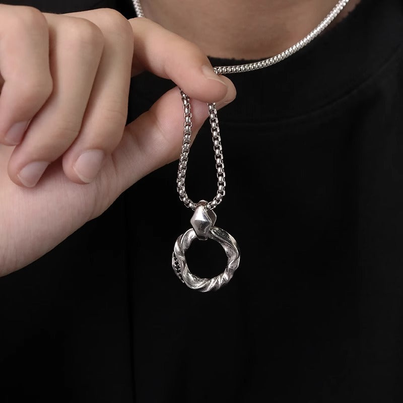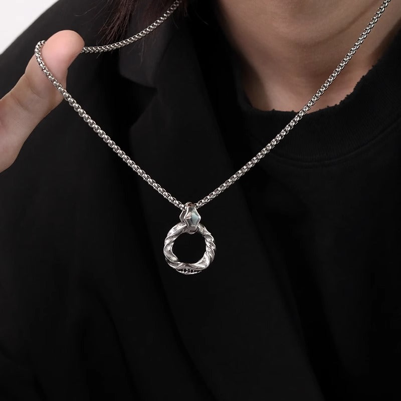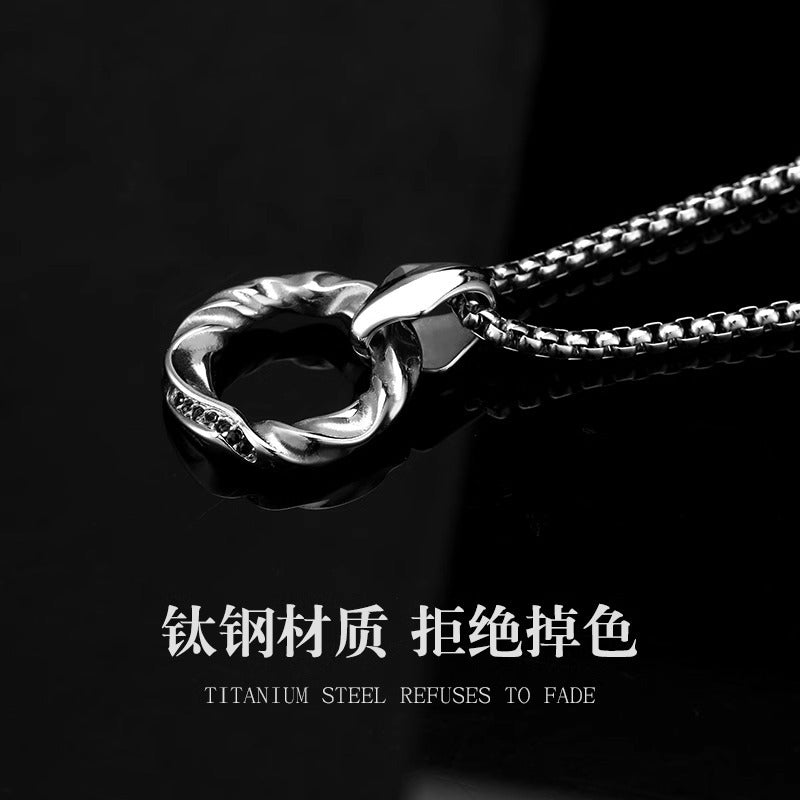 Men's Mobius Ring Pendant β Diamond Titanium Necklace