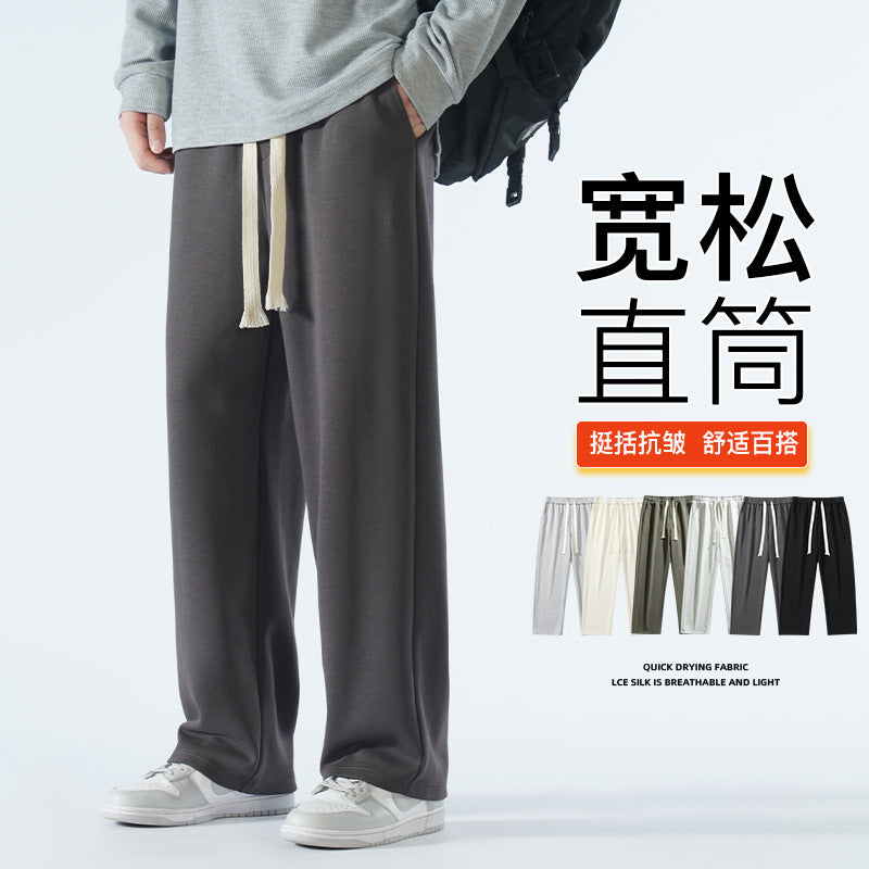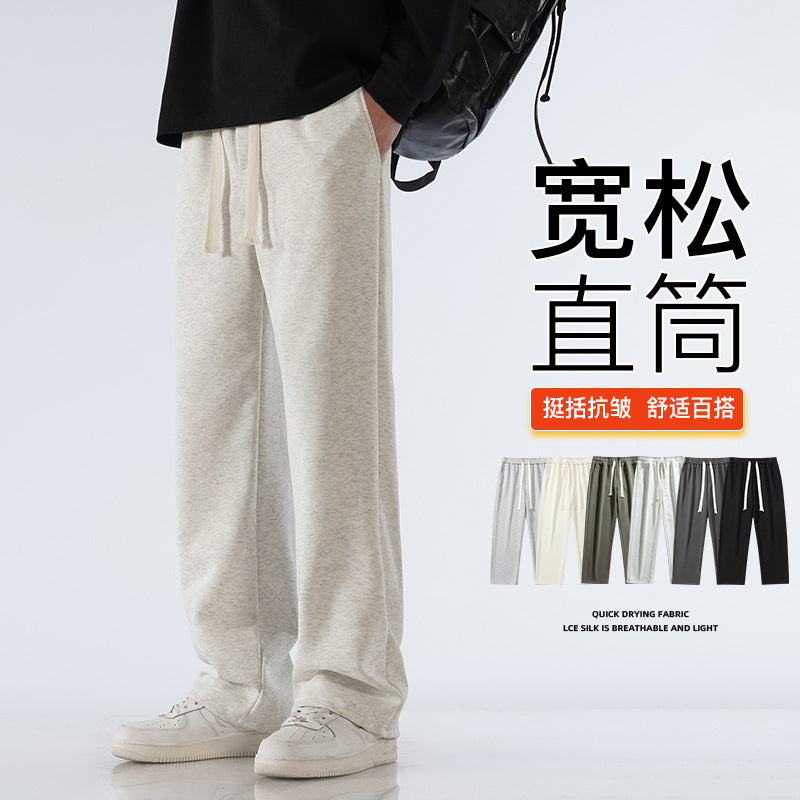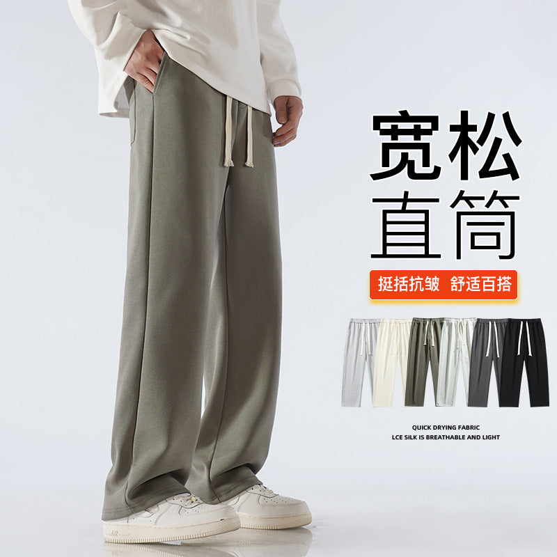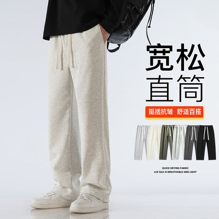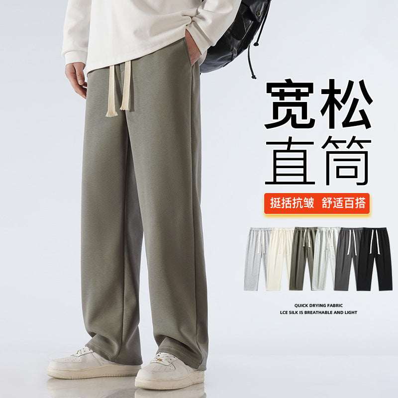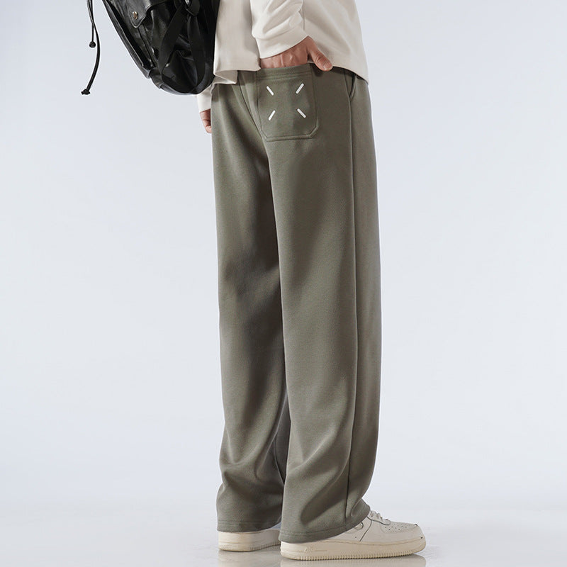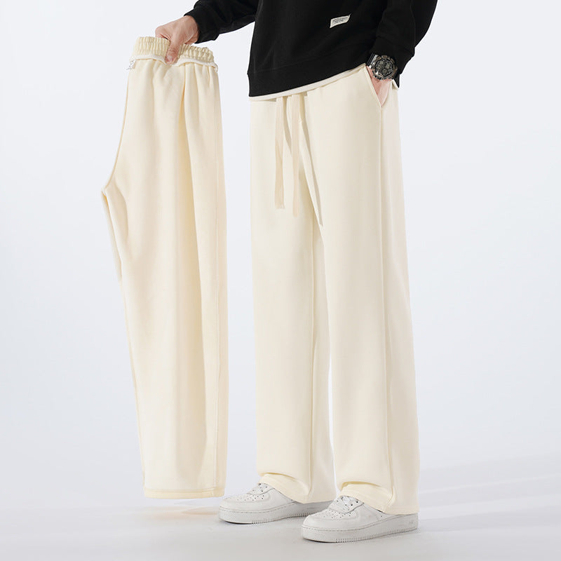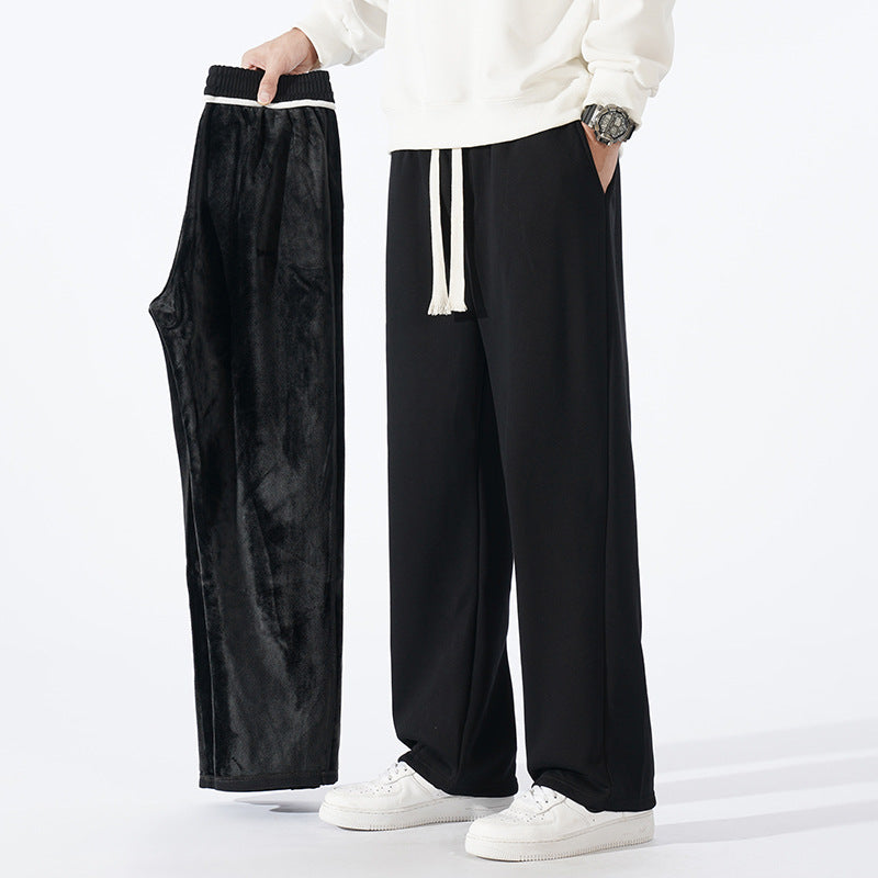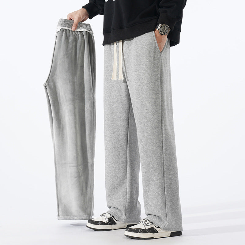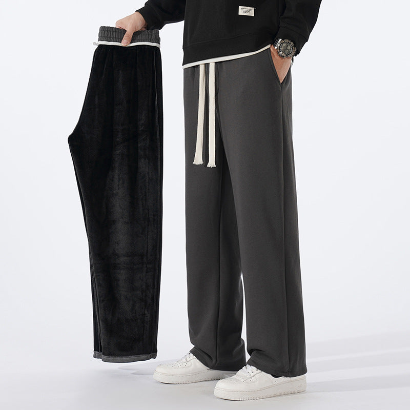 Men’s Fleece-Lined Sweatpants – Autumn & Winter Wide-Leg Casual