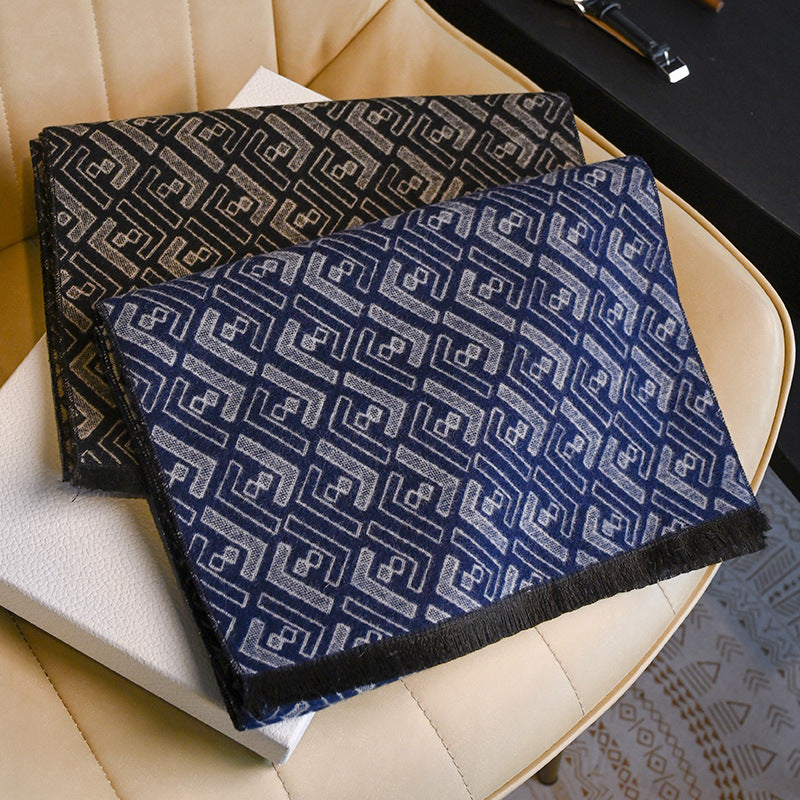 Men’s Black Wool Letter Scarf Business Winter
