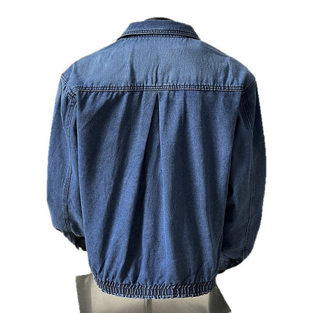 Men's Short Distressed Denim Jacket American Casual Zip