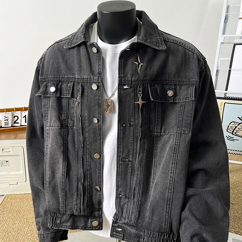 Add this versatile denim jacket to your wardrobe for a statement-making combination of high-end aesthetics, distressed retro charm, and casual practicality. A must-have outerwear piece for men seeking standout style and durability.