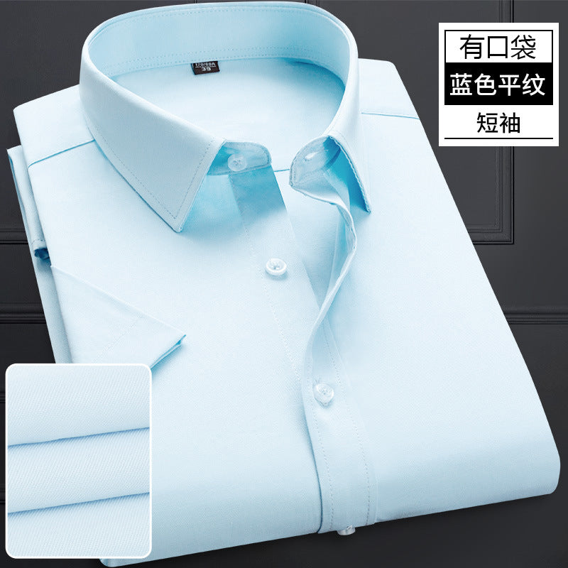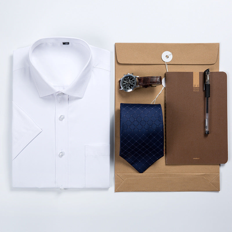 Men's Slim White Work Shirt | Summer Short Sleeve