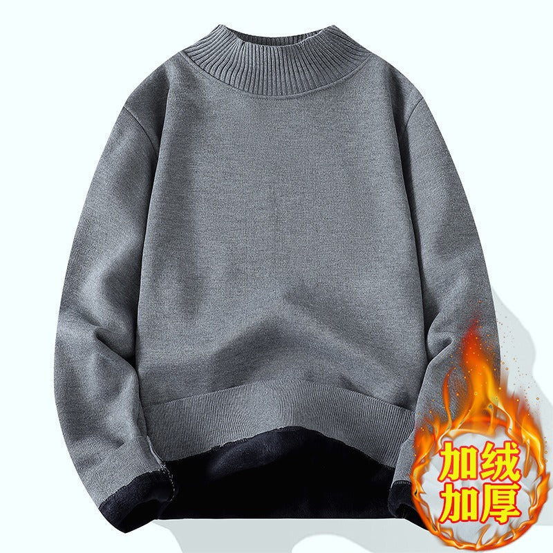 Men's Solid Color Semi-Turtleneck Loose Knit Base Shirt