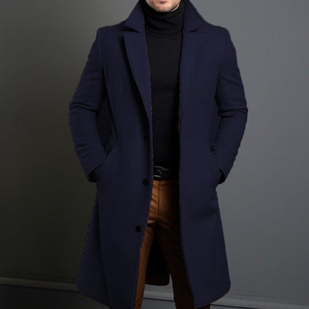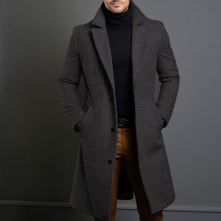 Men's Solid Lapel Single-Breasted Coat