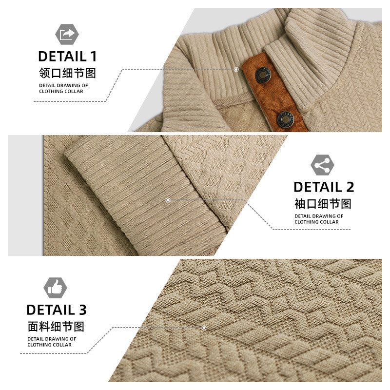 Men's Stand-Up Collar Jacquard Knit Long-Sleeve Sweatshirt