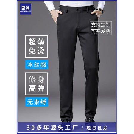 🌞 Stay sharp and stylish with these ultra-thin suit trousers for men, perfect for summer! Made with a blend of stretch fabric and a sleek straight-leg fit, these trousers are designed for both business and casual wear. The high waist and draped design provide a polished look, while the breathable material ensures you stay comfortable all day. Whether for a professional meeting or a casual outing, these trousers offer the perfect blend of style and comfort. Available in black and navy. 💼