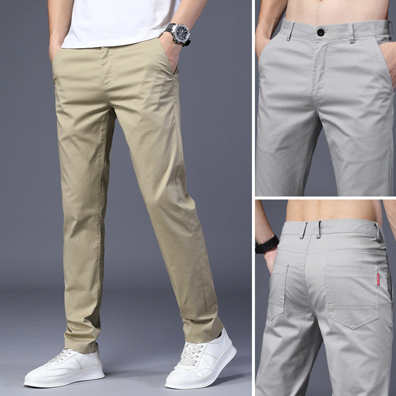 Men’s Pure Cotton Casual Pants – Slim Straight Summer 2025