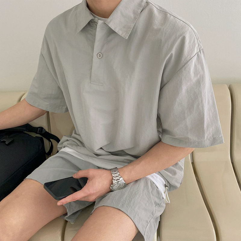The lapel collar polo T-shirt adds a smart-casual vibe, while the loose-fit shorts provide all-day comfort – whether you're out with friends, running errands, or just chilling. 😎🩳