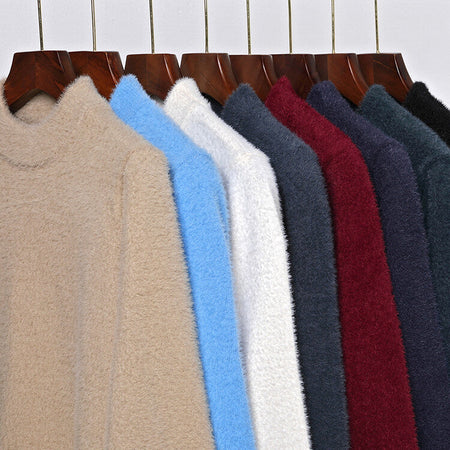 Stay warm and fashionable this winter with the Men's Thickened Imitation Mink Fleece Sweater, designed for middle-aged and young men. This solid-color, plush sweater provides exceptional comfort while offering a polished, versatile look suitable for casual or semi-formal occasions.