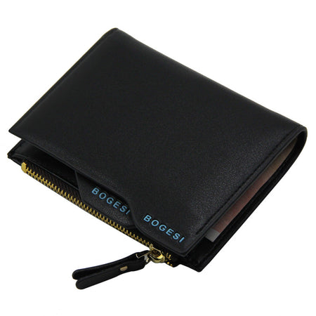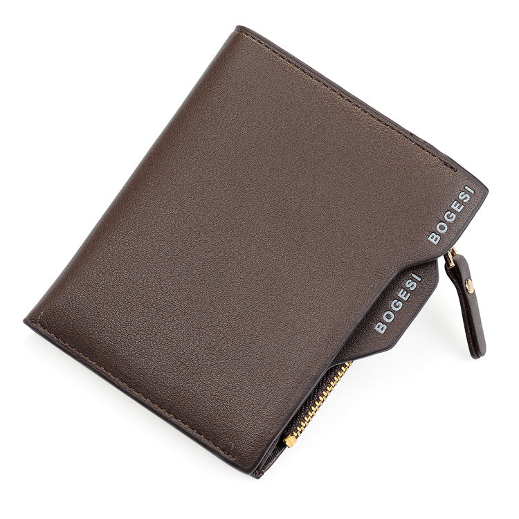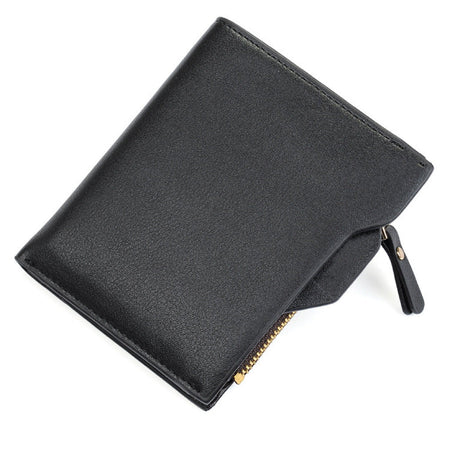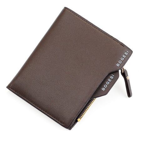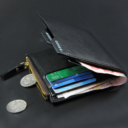 Men’s Short Wallet – Compact Silver Coin & License Zipper Purse