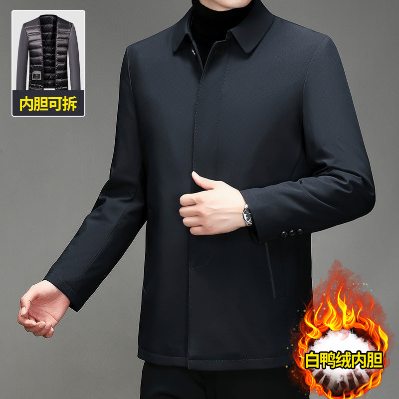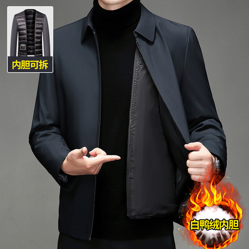 Middle-Aged Men’s Down Jacket – Thick Warm Lapel Winter Coat