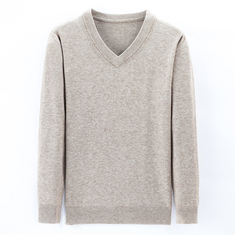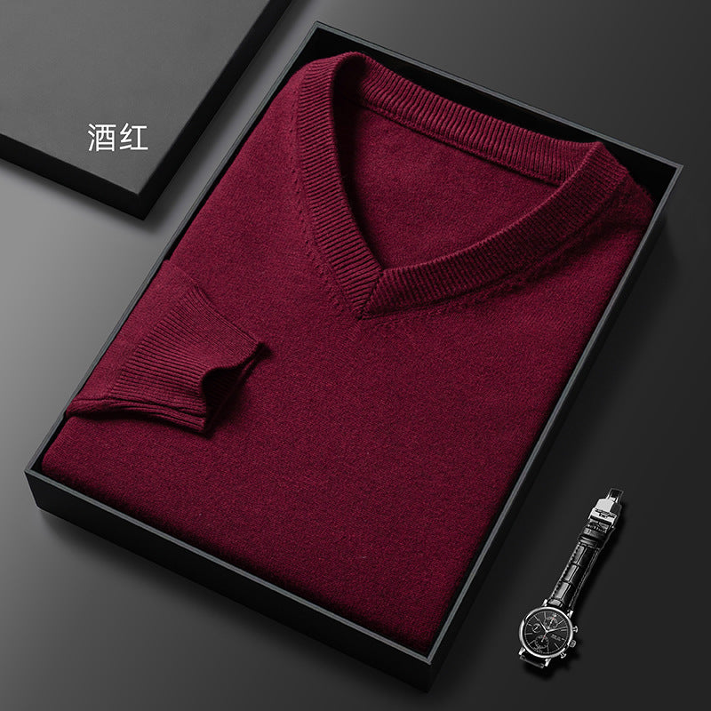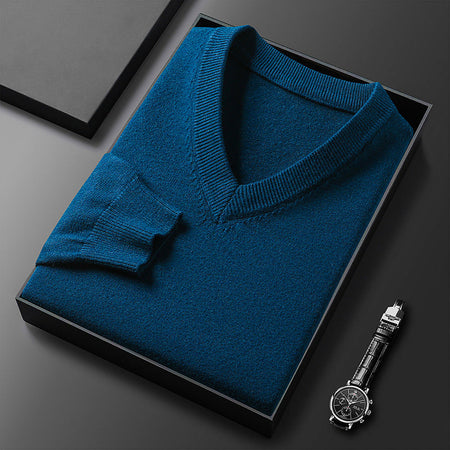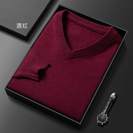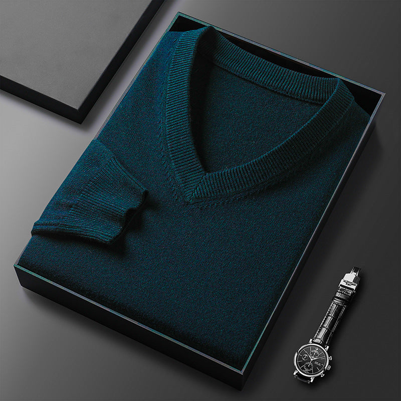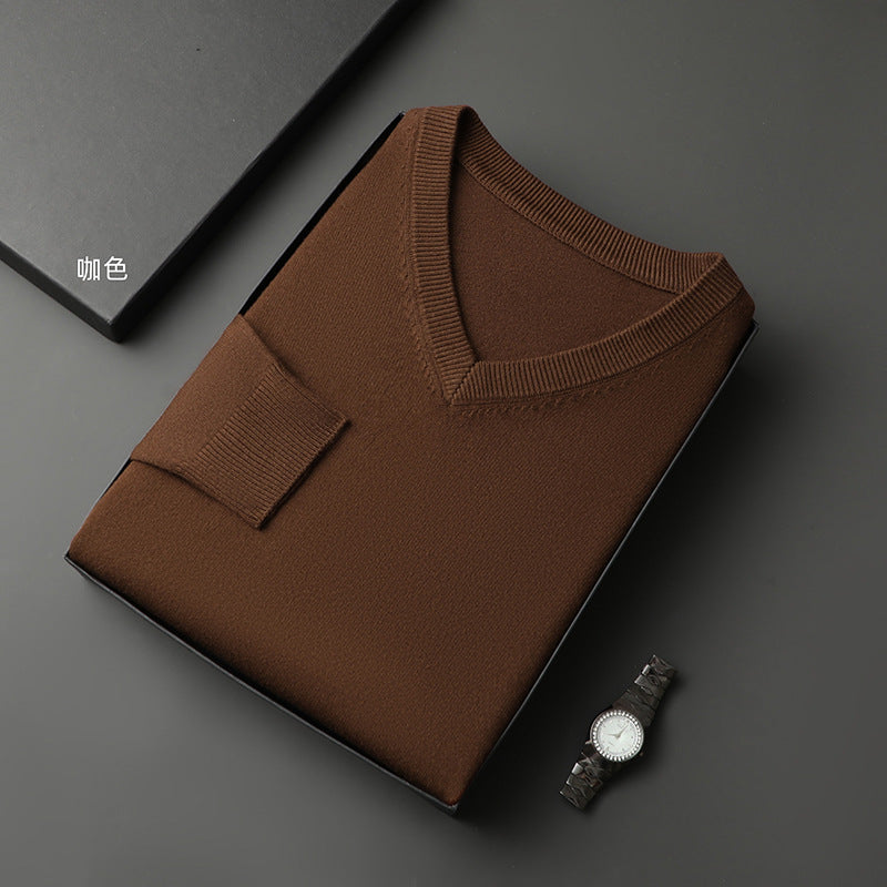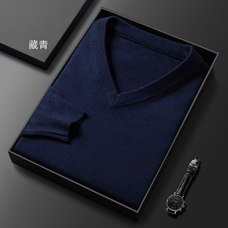 Middle-Aged Men's V-Neck Thick Warm Knitted Sweater