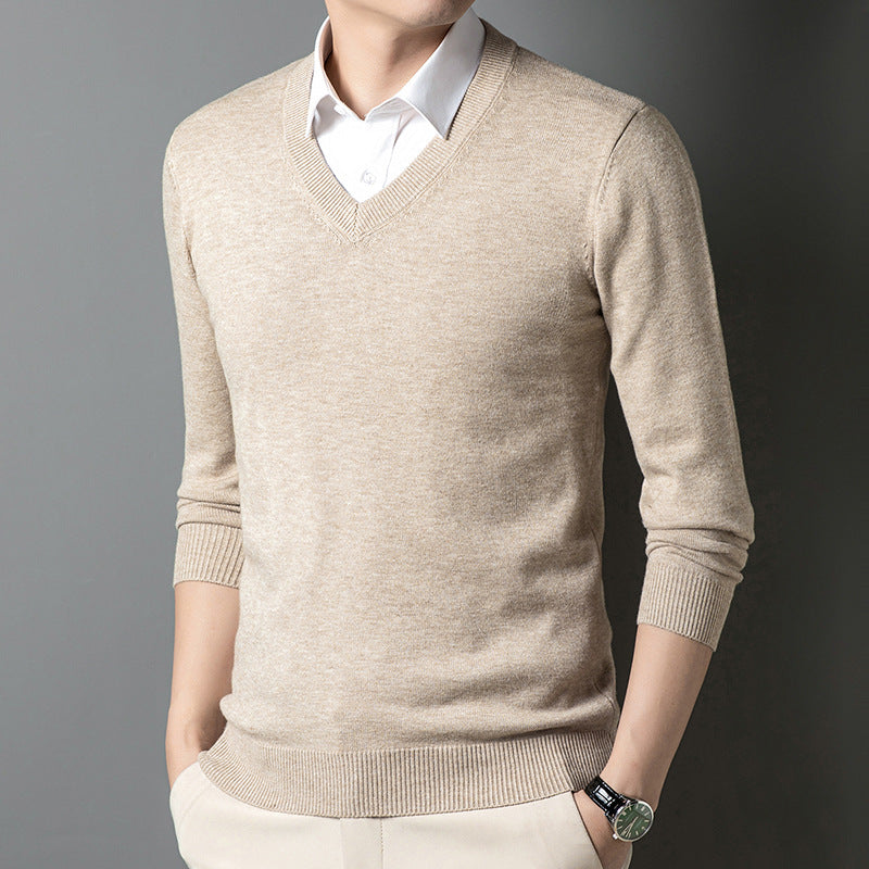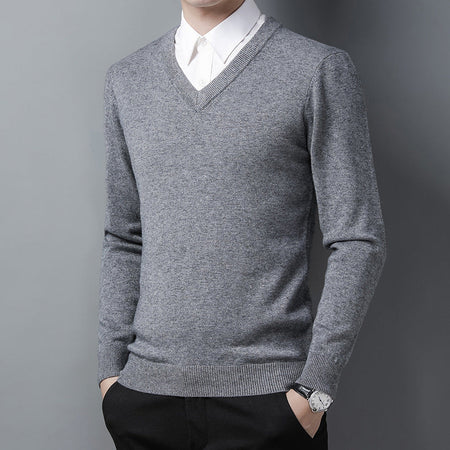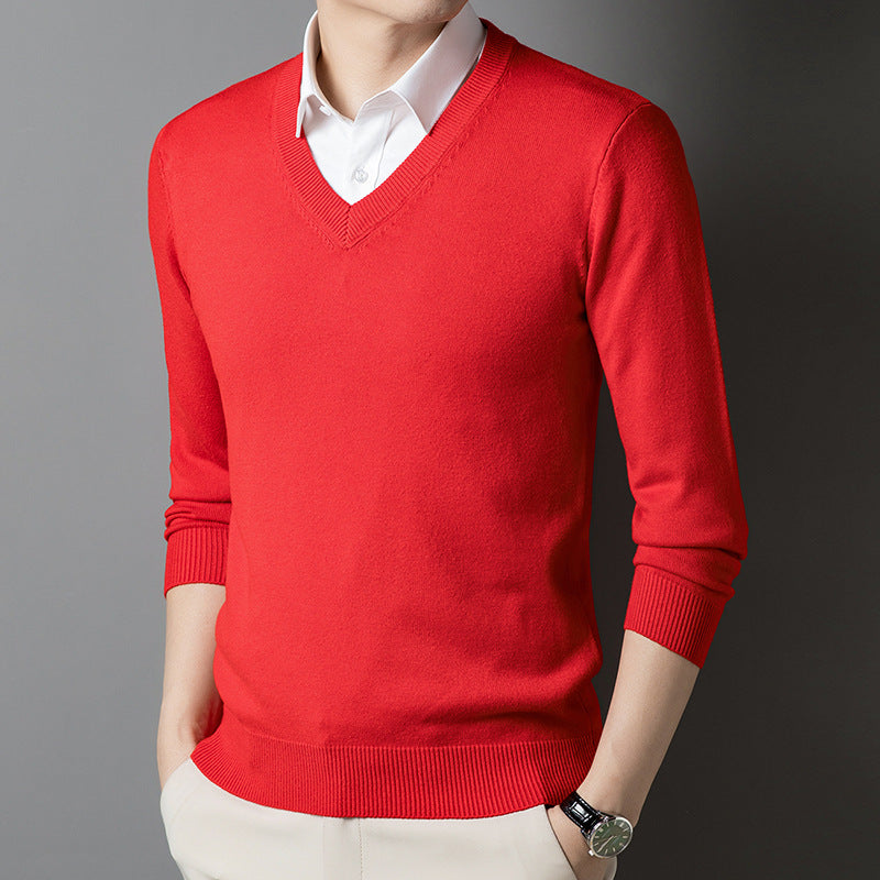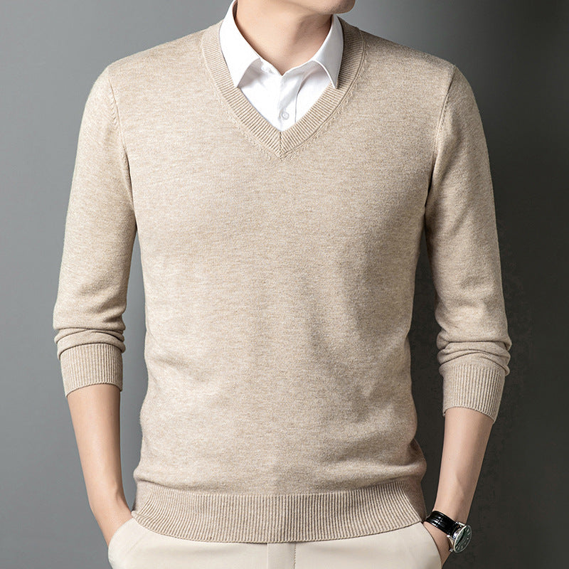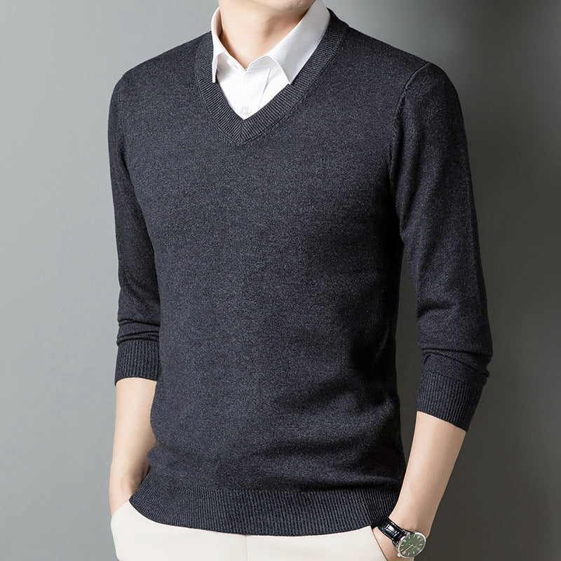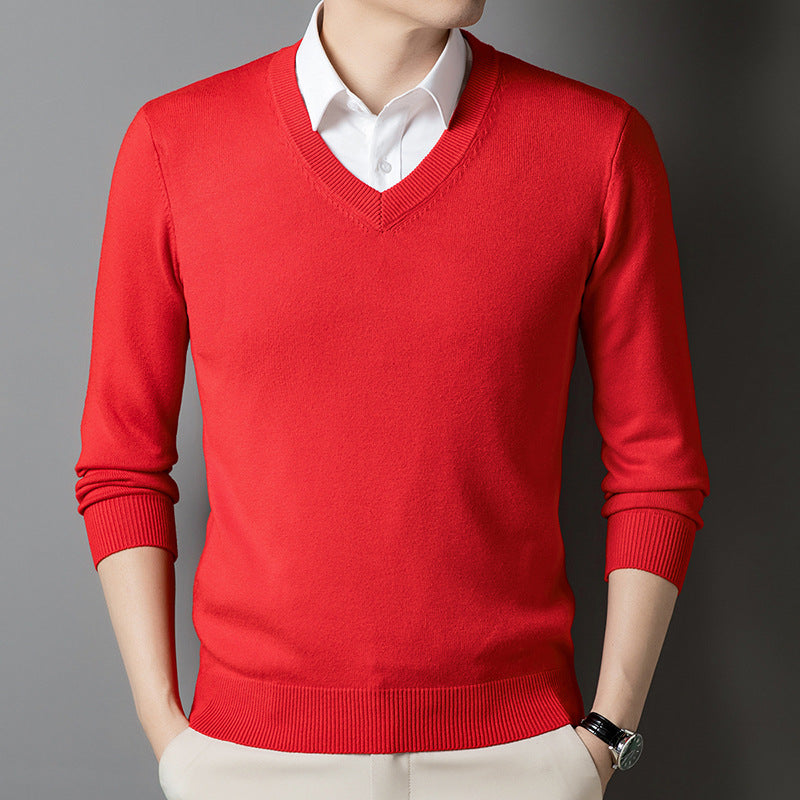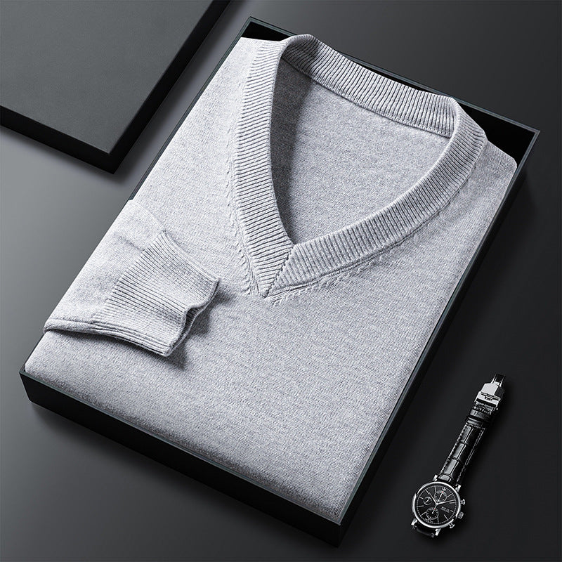 Middle-Aged Men's V-Neck Thick Warm Knitted Sweater