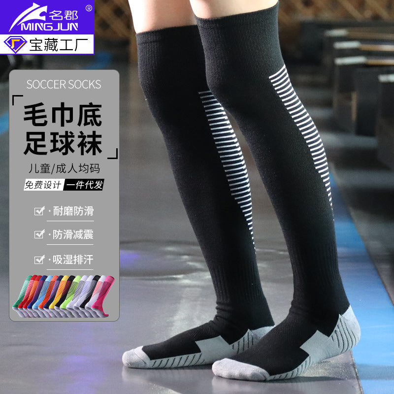 Step up your game with our Mingjun Thickened Football Socks ⚽. Designed for adults and children, these socks provide non-slip grip and breathable comfort.
