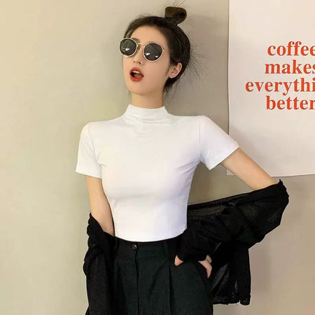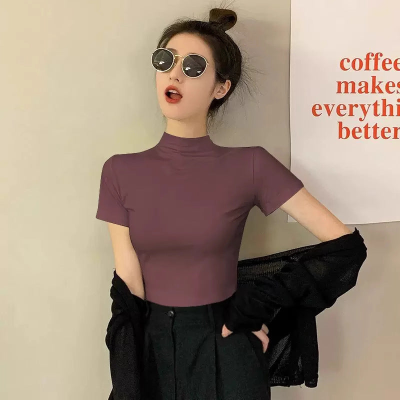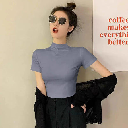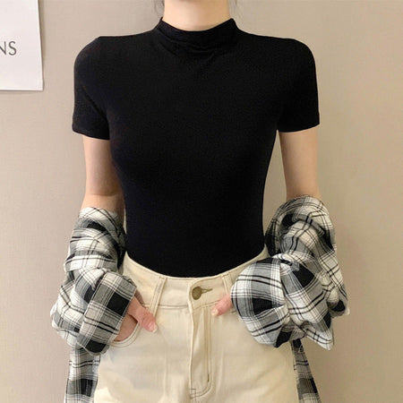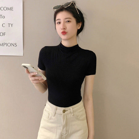 Elevate your summer wardrobe with our Modal Black Half High Neck T-Shirt! 🌞