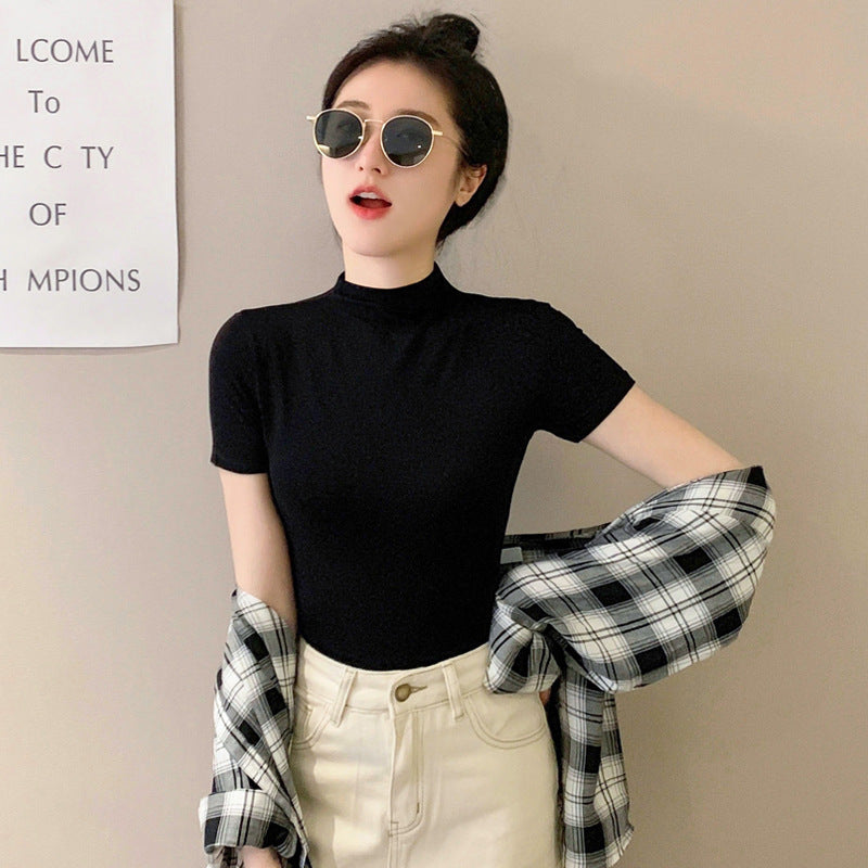 Modal Black Half High Neck T-Shirt – Summer Slim Fit