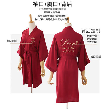 ✨ Celebrate your big day in style with this elegant bridal satin morning robe – perfect for brides, bridesmaids, and wedding parties. Made with luxurious ice silk satin, this lightweight bathrobe offers a silky-smooth touch, breathable comfort, and a glamorous look that’s ideal for spring, summer, or autumn weddings.