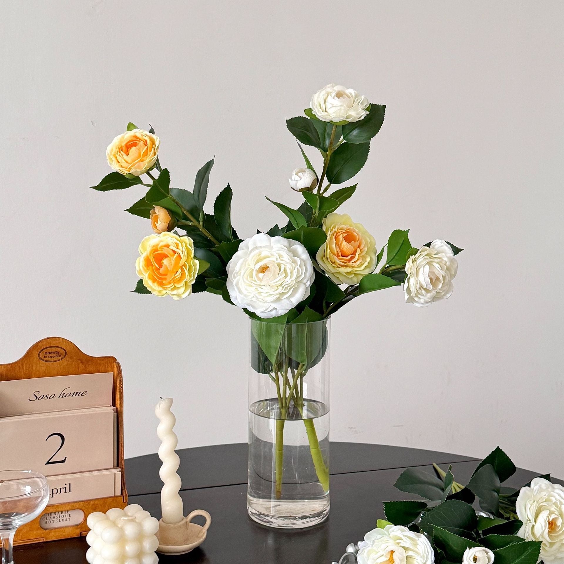 Multi-Head Artificial Camellia Branch – Home & Table Décor