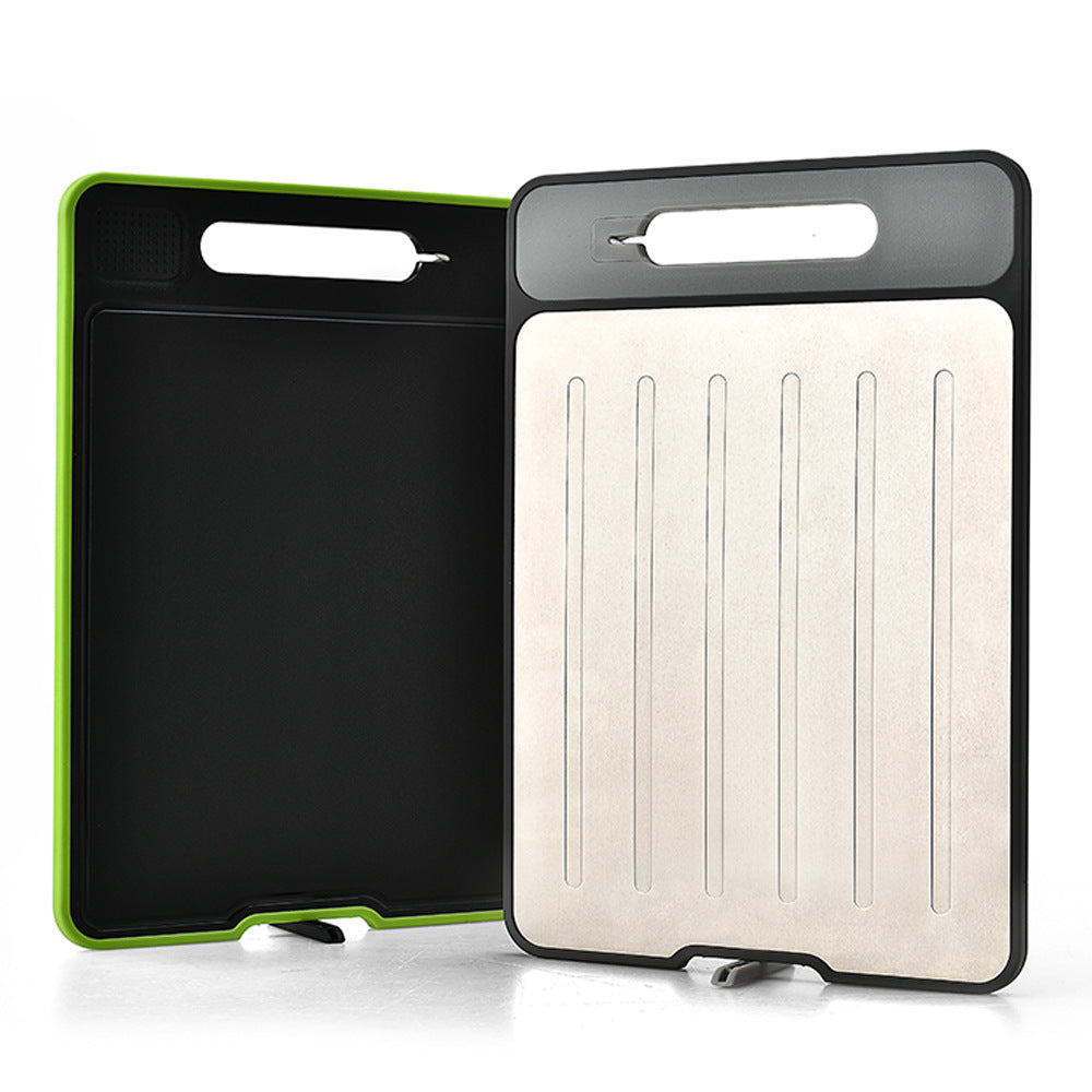 Designed for busy cooks who want efficiency and convenience, this cutting board saves counter space while offering multiple handy functions. The double-sided thawing board helps you quickly defrost meats, while the integrated sharpener keeps your knives razor-sharp. β‘π΄